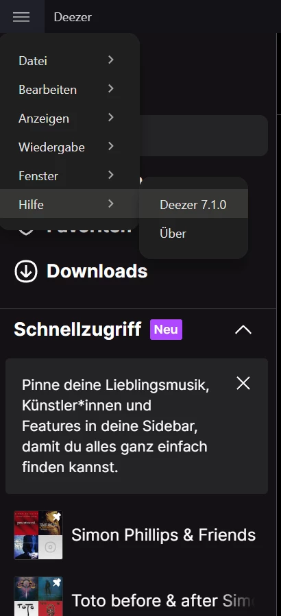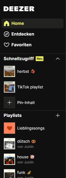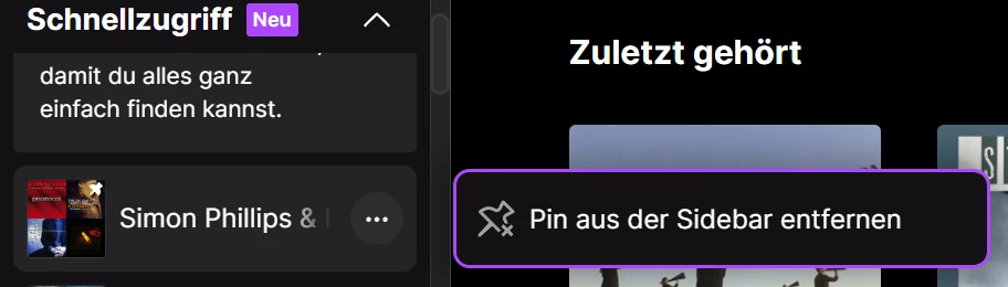 Im Webplayer gibt es jetzt eine zusätzliche Möglichkeit, in der Sidebar auf der linken Seite Pins als “Schnellzugriff” anzuheften, u.a. Deine Lieblings-Genres und Moods beim Flow. Die Pins sind auf maximal acht begrenzt, bei Spotify sind es maximal vier, glaube ich: