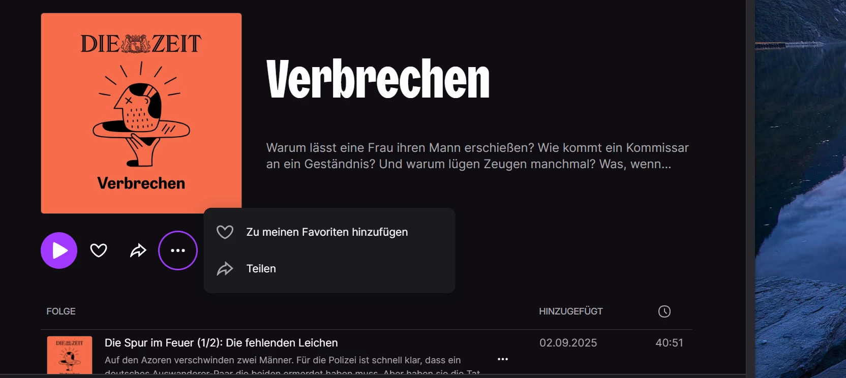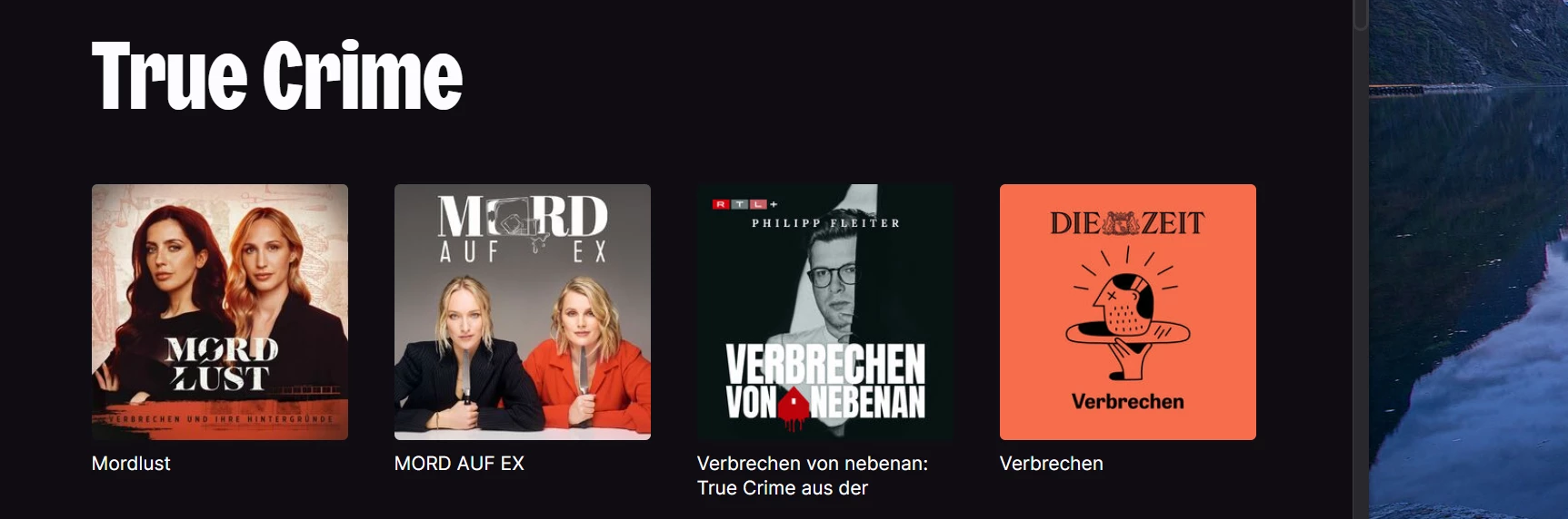 Bei mir sieht die “True Crime”-Ecke für Podcasts in der Desktop-App so aus: