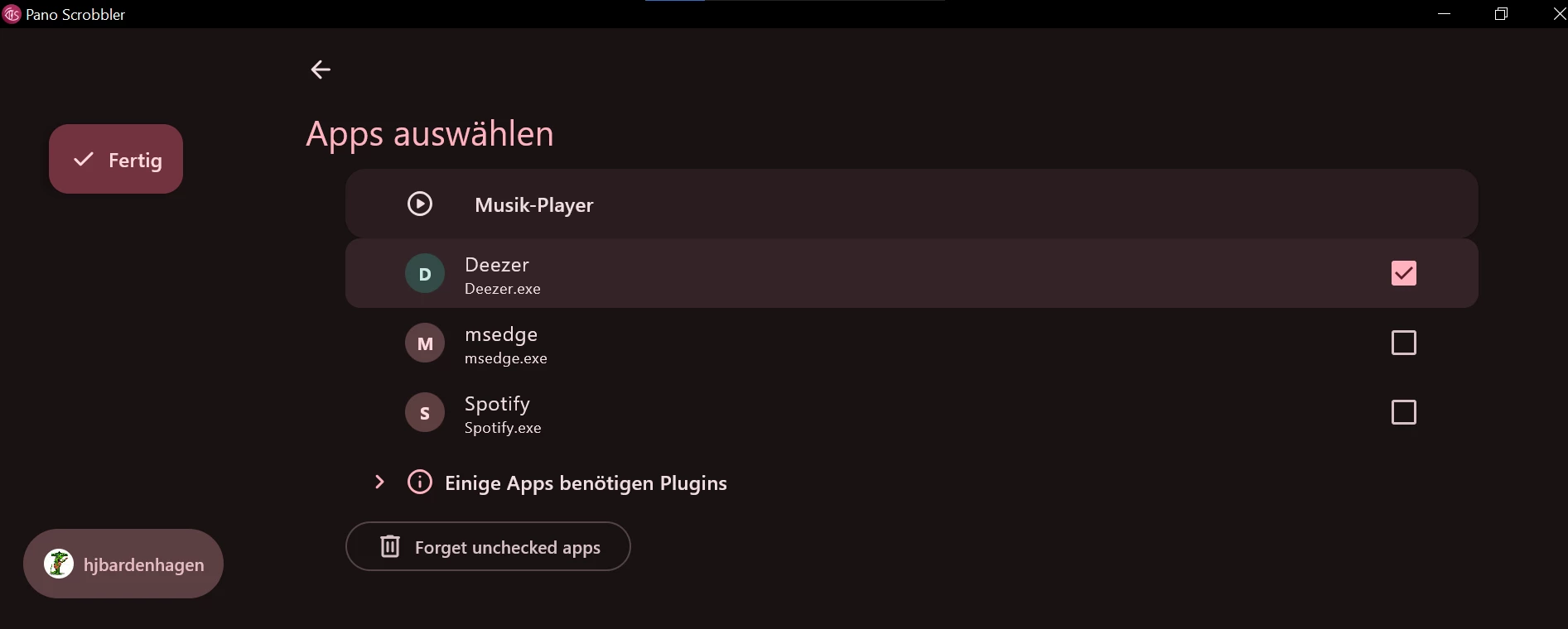 Wer gerne aktuell auf Last.fm sehen will, was gerade gehört wird bzw. wurde und am liebsten die Deezer Desktop-App zum Hören benutzt, kann das also jetzt beheben. Beim Installieren von Pano Scrobbler für Windows zickt die Windows Firewall erst mal rum und blockiert den Download, weil “die App selten heruntergeladen wird”. Das kann man aber in den Optionen umgehen bzw. ignorieren und dann normal installieren. Die nötigen Einstellungen, um Deezer dann auch in Pano zu aktivieren, sind ebenfalls ein bisschen versteckt: auf dem eigenen Profil unten anklicken, dann auf ”Scrobbeln von… Apps auswählen”, den Haken bei Deezer setzen und auf “Fertig” klicken: