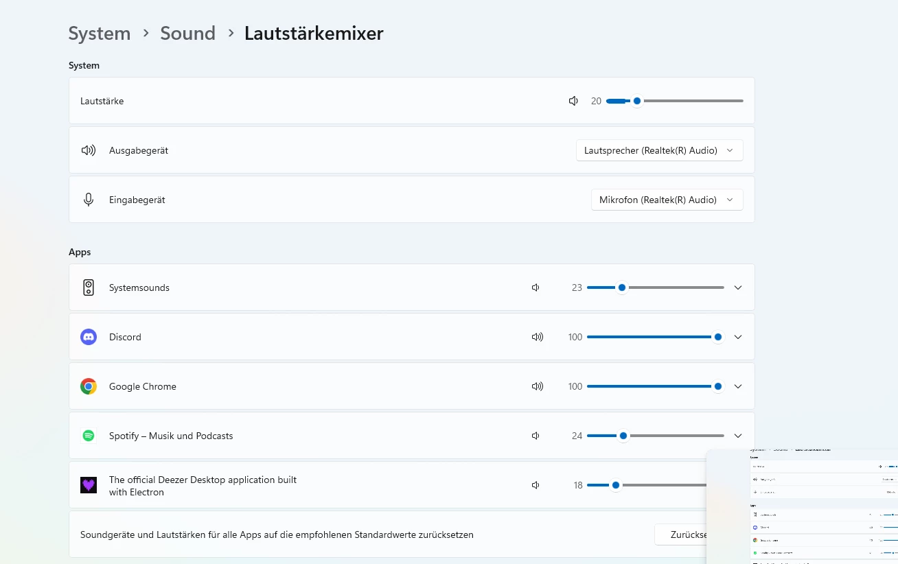 Windows hat noch eine eigene Option, um verschiedene Lautstärken anzugleichen, ebenfalls praktisch bei lauten Spielfilmen, wo die Dialoge sonst im Lärm untergehen.