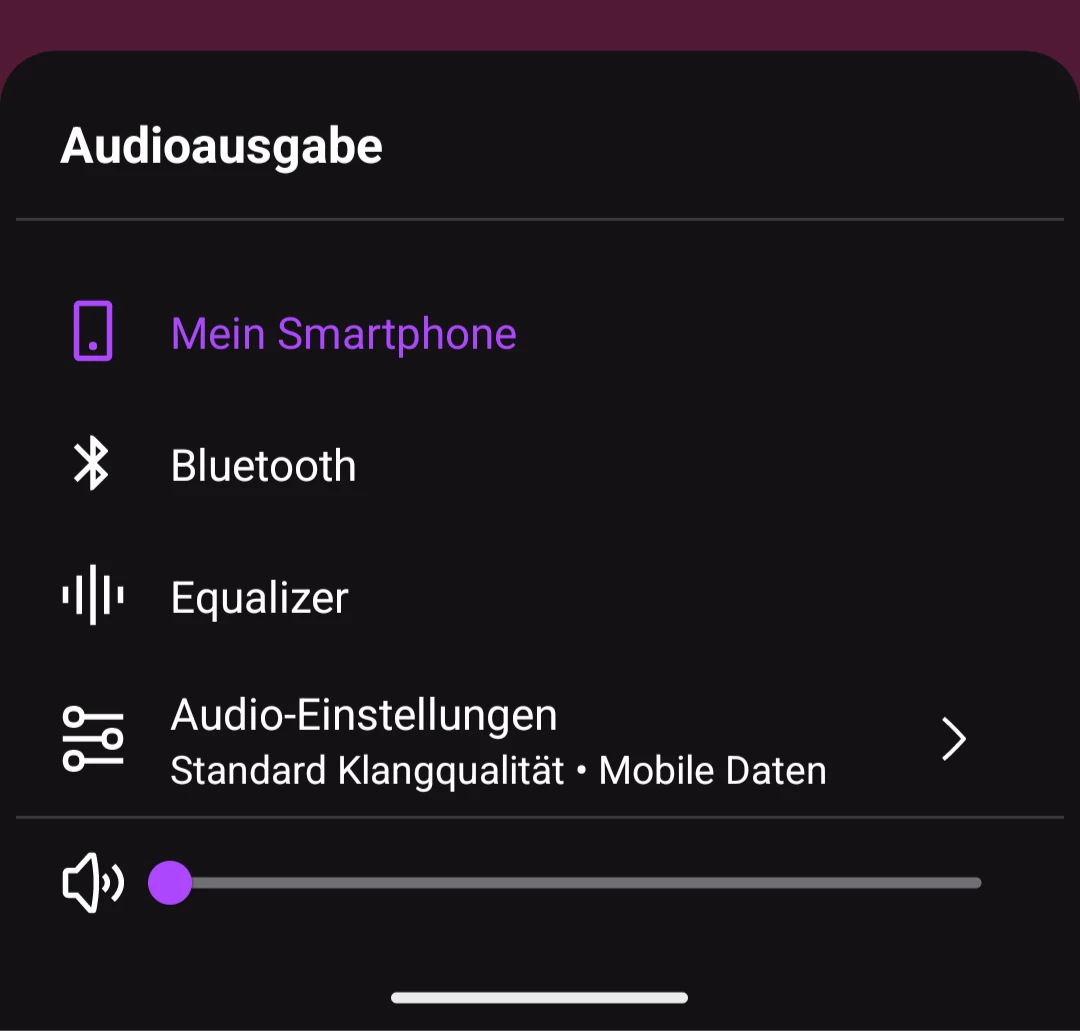 Ich würde mir wünschen, dass die Android-App mehr Transparenz hinsichtlich der aktuellen Streaming-Qualität bietet. Ich habe Downloads und WLAN-Streaming in High Fidelity und mobile Daten in Standard-Audioqualität eingestellt. HiFi wird bei der Wiedergabe eines Songs über WLAN korrekt in den Audiooptionen unten links angezeigt. Wenn ich jedoch nicht mit dem WLAN verbunden bin und einen heruntergeladenen Song abspiele, wird nicht ausdrücklich angezeigt, dass die Download-Version in HiFi abgespielt wird. Stattdessen wird „Mobile Daten“ und „Standardqualität“ angezeigt, was hoffentlich nur ein Fehler in der Beschriftung ist. Selbst wenn der Offline-Modus aktiviert ist, wird „Mobile Daten“ und „Standardqualität“ angezeigt. Wäre es möglich, dass die App um das Label „Downloads“ erweitert wird und auch die richtige Audioqualität angezeigt wird?