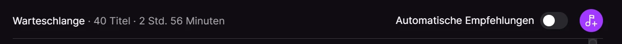 Der Schalter für Automatische Empfehlungen ist in diesem Screenshot deaktiviert - der lila Button rechts daneben speichert alle angezeigten Titel der Warteschlange in einer Playliste, was manchmal praktisch ist. Möglicherweise ist dieser Schalter nur in Premium-Abos verfügbar oder aber nicht in den Mobil-Apps, Deezer hat da leider keine einheitliche Linie, wo wann was funktioniert oder nicht.