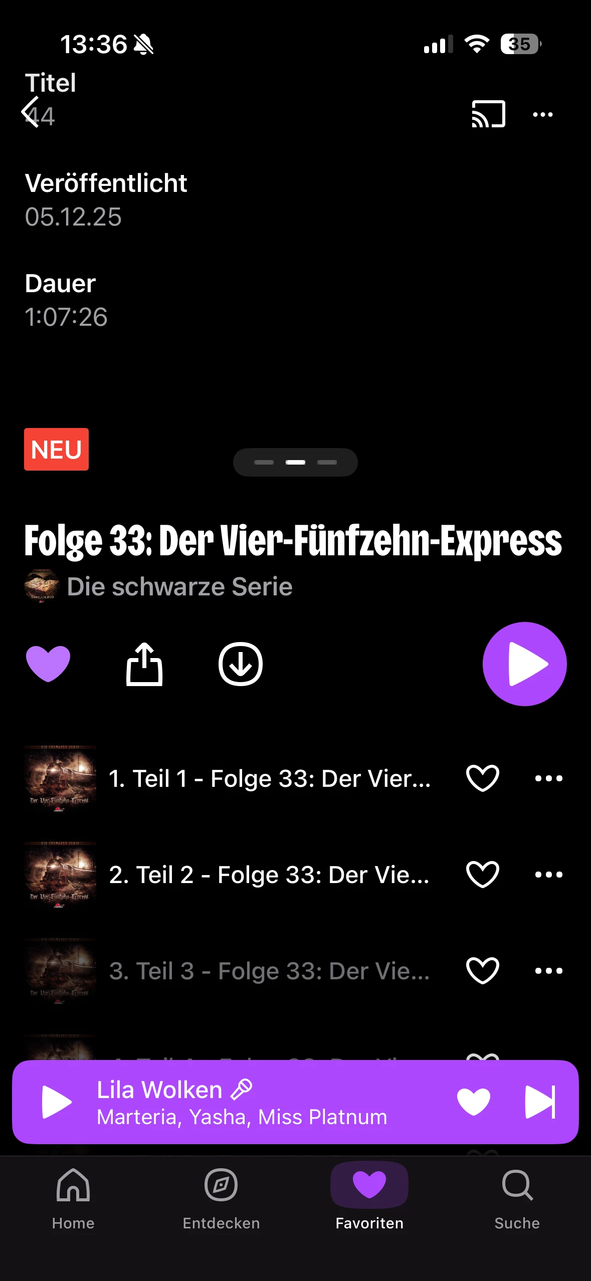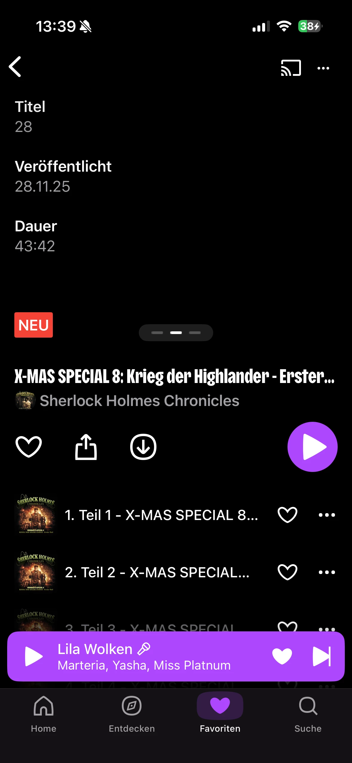 ich bin mir nicht sicher, ob das zu dem Thema hier passt, aber mir ist aufgefallen, dass derzeit sehr viele Hörspiele zwar online gestellt werden und auch als neu markiert werden, zum Beispiel bei Sherlock Holmes Chronicles Dreamland Grusel und anderen, diese aber lange nicht verfügbar sind, trotzdessen, dass sie als veröffentlicht angezeigt werden. D.h. die Hörspiele sind anders als bei John Sinclair aufrufbar und auch zu finden. Man kann allerdings nur die ersten beiden Songs abspielen also wie bei einer Vorschau. Dies auch bei folgender Fall die bereits mehrere Wochen veröffentlicht worden sind. Das die Hörspiele nicht immer am selben Tag der Veröffentlichung abrufbar sind, kenne ich bereits, das scheint mir aber ein tiefergehendes Problem zu sein. Den Cache habe ich bereits gelöscht und auch die App neu installiert. Beides hat nicht geholfen. Das scheint mir aber ein tiefergehendes Problem zu sein.