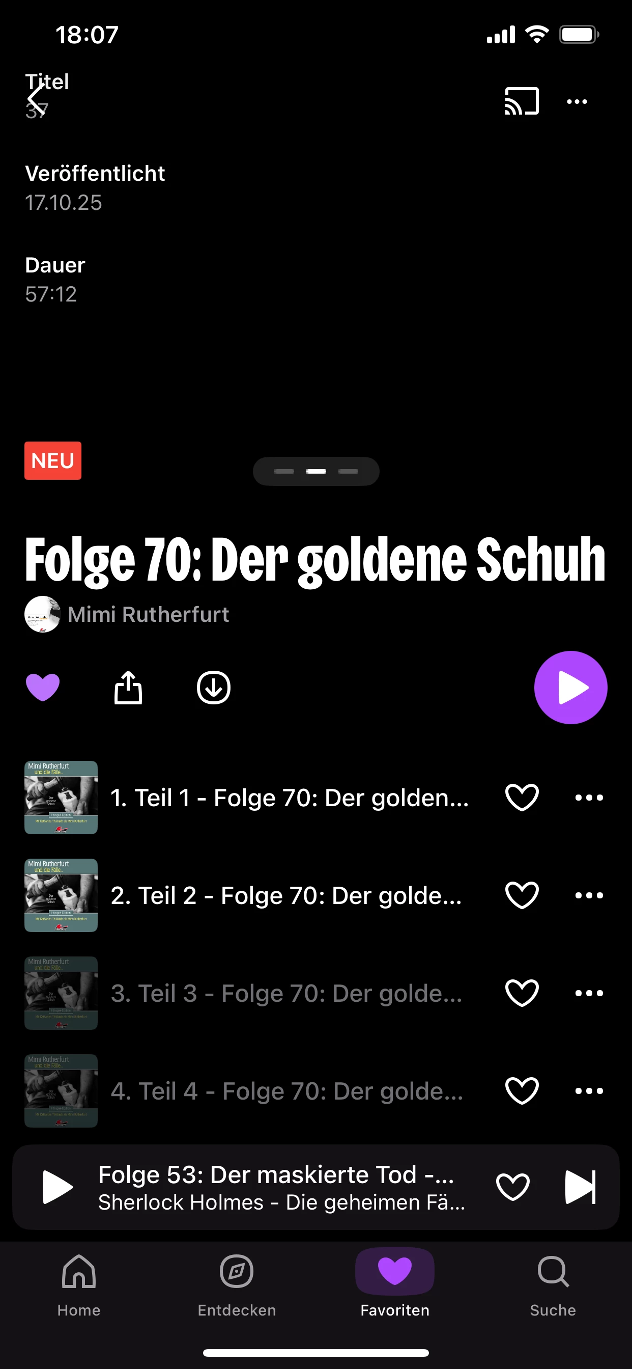 seit kurzem sind bei neuen Hörspiele nur zwei Kapitel verfügbar. Ich habe es auf verschiedenen Geräten getestet.
