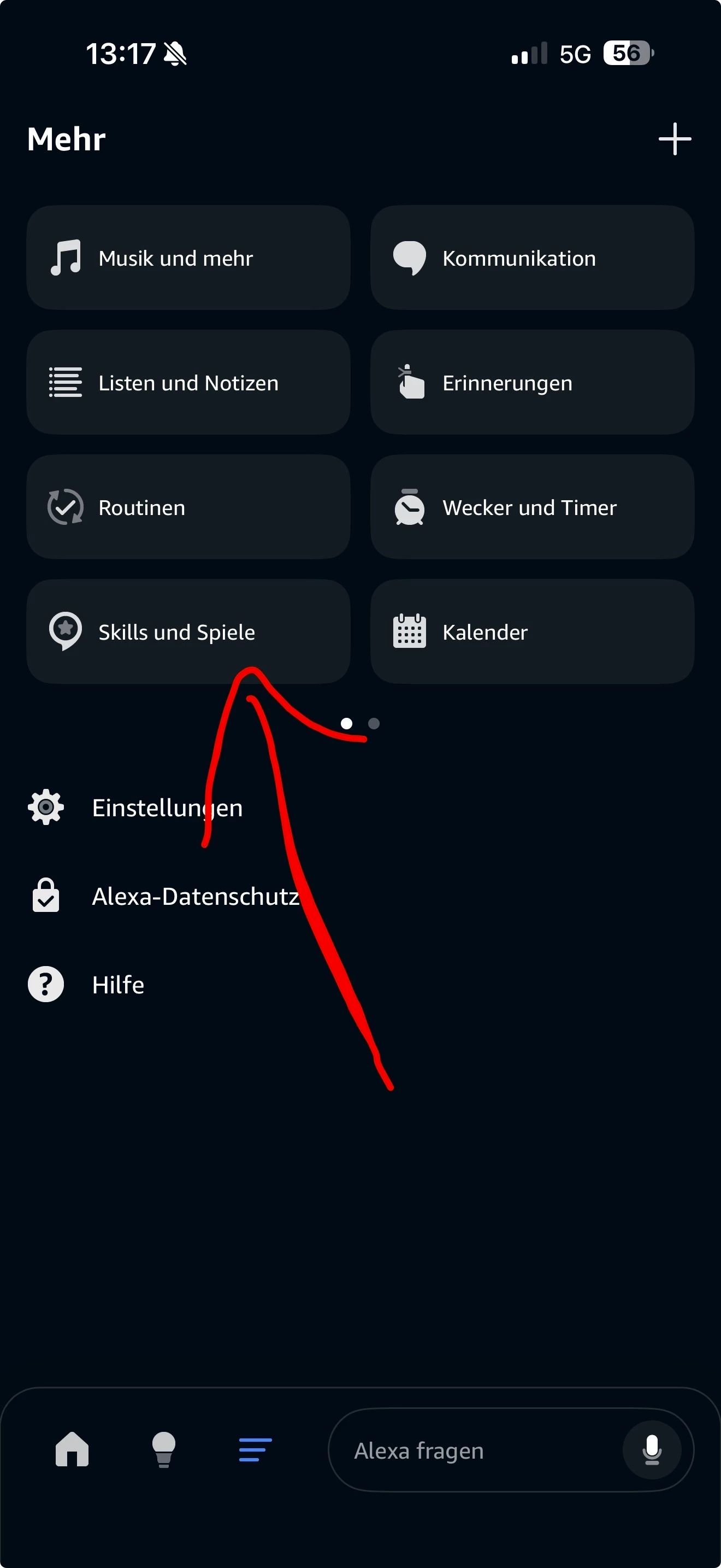 Anschließend gehst du in der Alexa App auf die 3 Striche und dann auf Musik und mehr. Da kannst du dann Deezer als Standarddienst auswählen.