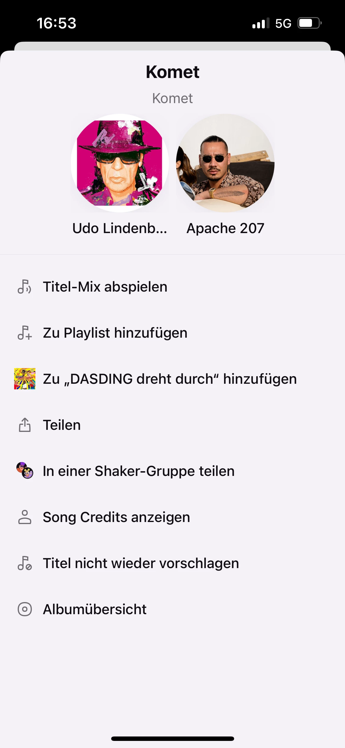 Auswahlmöglichkeiten, wenn ich einen Song aus einer anderen Playlist hinzufügen möchte: