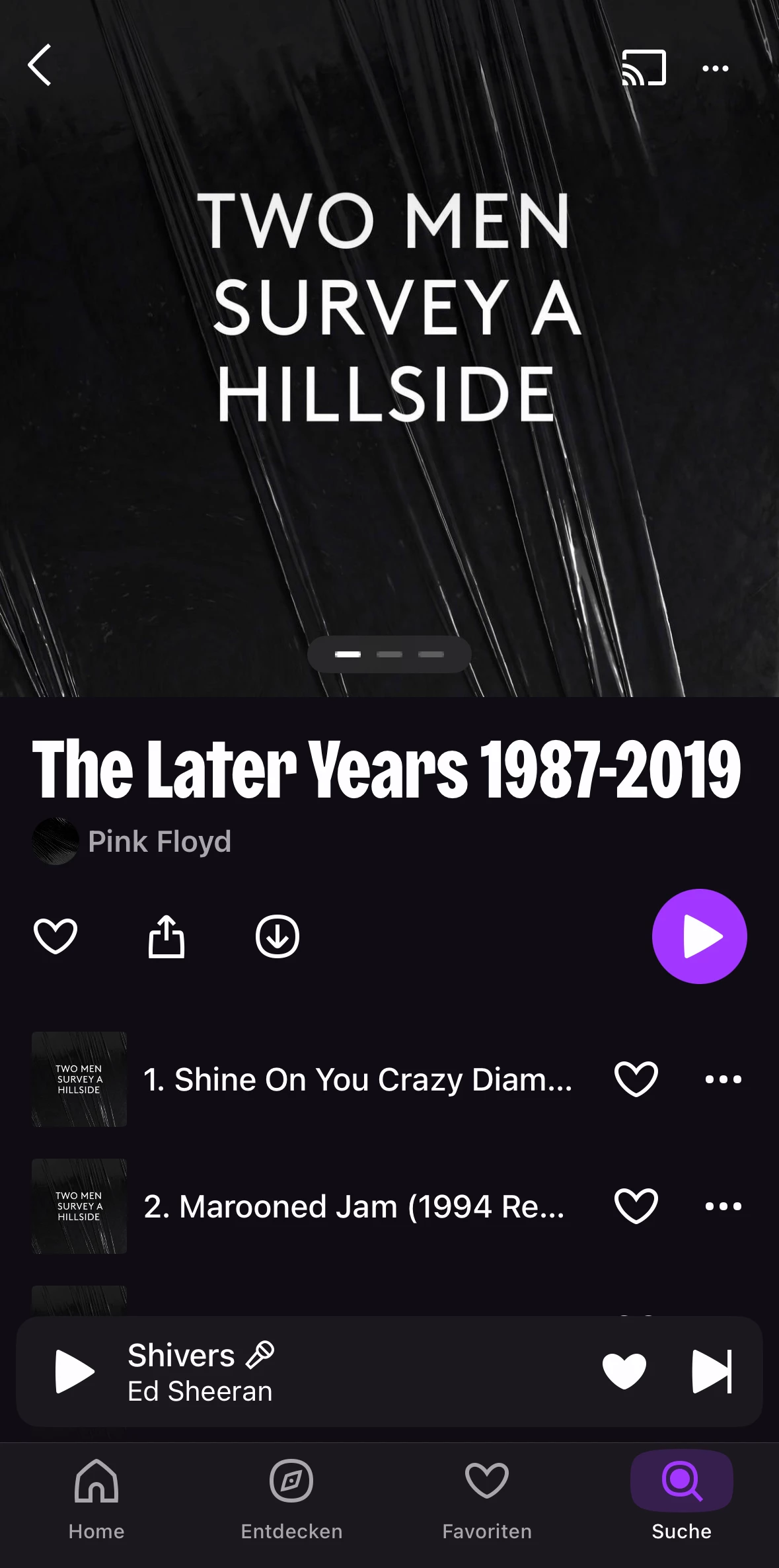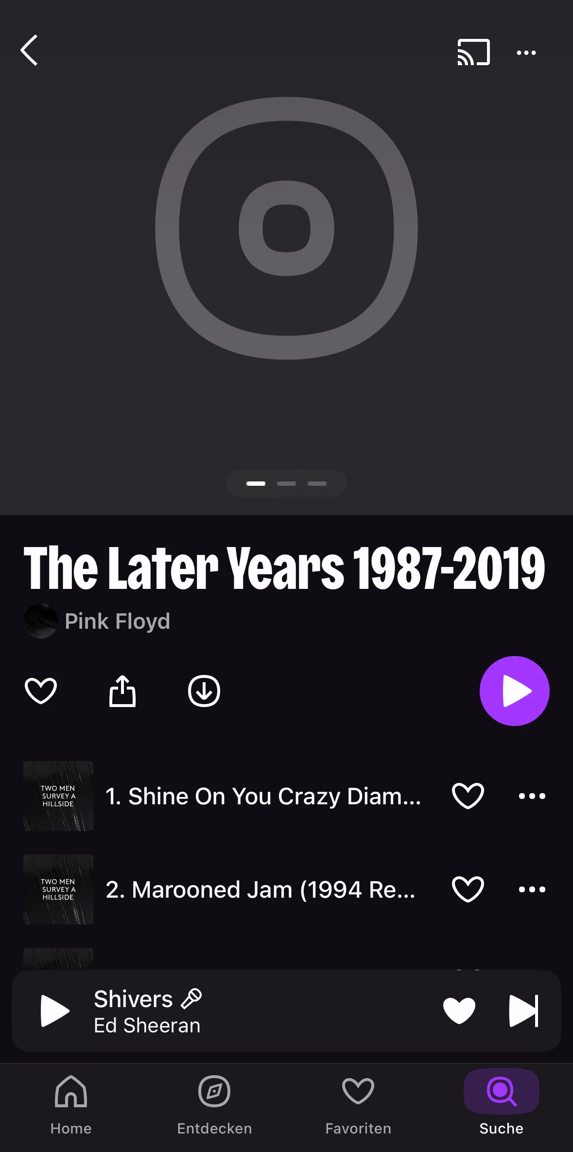 Bei Pink Floyd wird ein Album z. B. folgendermaßen angezeigt, je nachdem wie man über die Suche dorthin navigiert. Entweder über die Künstlerseite oder direkt über die Albenansicht der Suche für den Künstler.