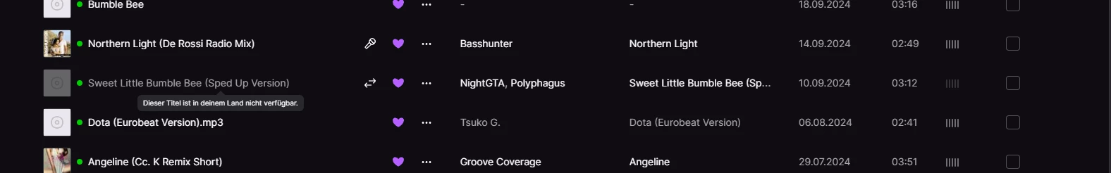 Man kann ganz genau sehen, welche Songs ich ersetzt habe und welche nicht, es sind die, die kein Bild haben.