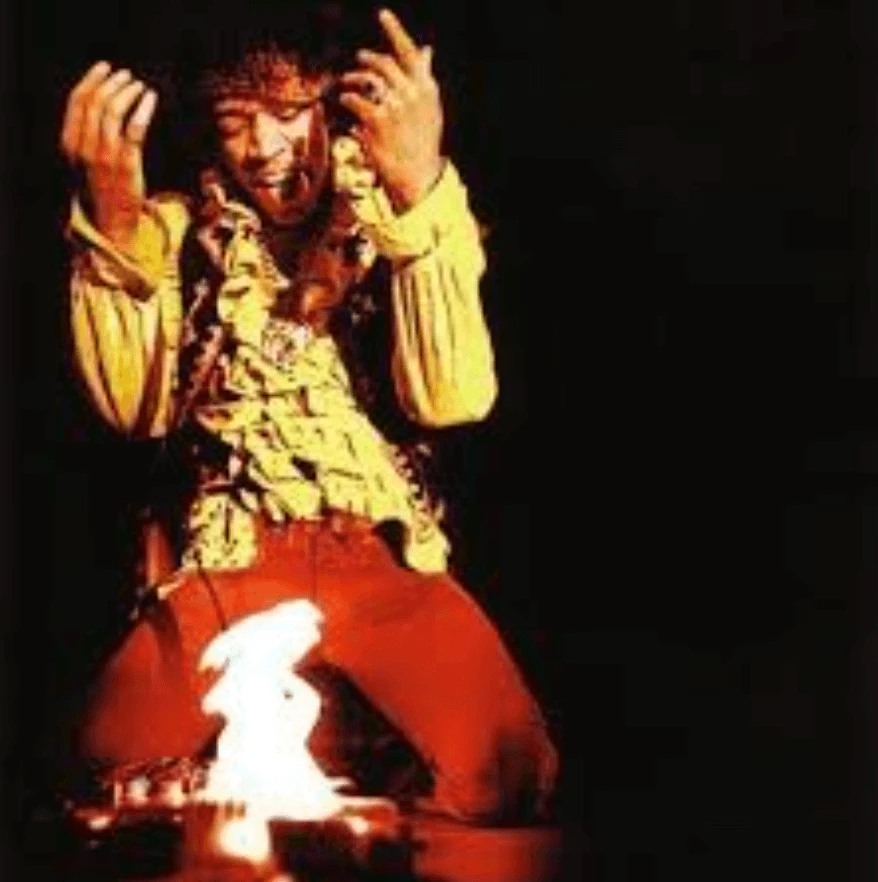Beim Monterey Pop Festival opfert Hendrix seine Stratocaster den Flammen. Dieses Bild steht für kreative Zerstörung, musikalische Ekstase und den Geist der Gegenkultur der 60er.