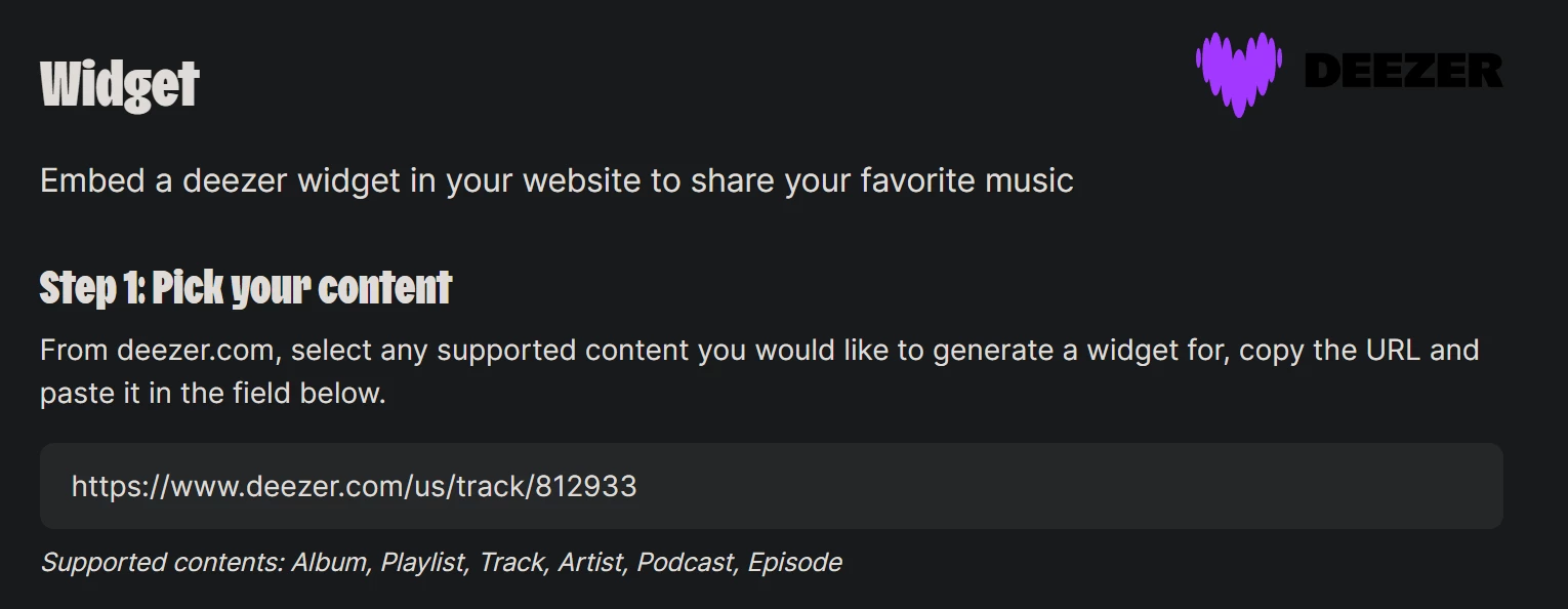 Willkommen im Deezer-Forum! Wenn Du das Einbetten mit Vorschau von einzelnen Liedern oder Alben usw. meinst, das funktioniert mit dem Link fürs Teilen, aber nicht die Kurzfassung, sondern die lange URL, die man über das Widget-Symbol </> im Browser aufrufen und kopieren kann. Wenn man diesen Link im Forum-Editor einfügt, wird die Vorschau automatisch eingefügt: