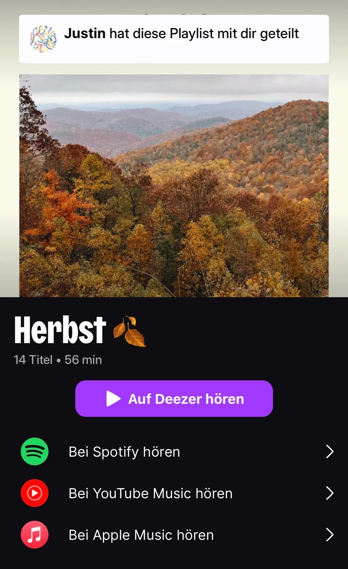 Und sieh an. Es ist da! Man kann Playlists anderen Spotify, YouTube Music oder Apple Music-Usern zusenden 🙌